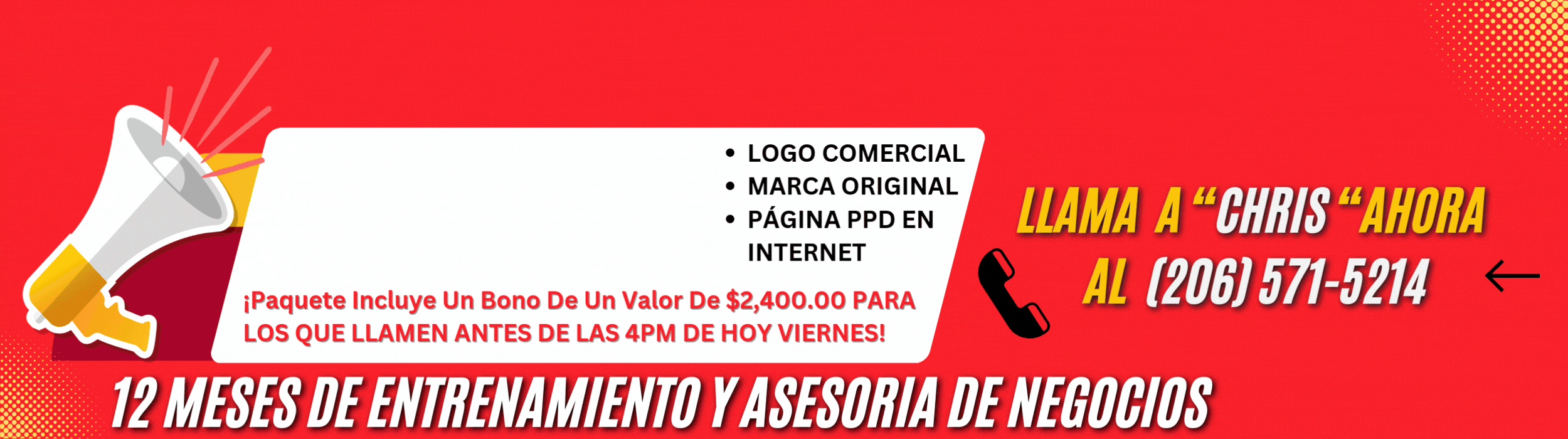 Llama Chris De Negocios Hoy Para Una Consulta Hasta 30 Minutos A No Costo, Pero la Condición Es Que Cuando Llames Estés En Un Lugar Silencioso, Tranquilo Y Sin Distracciones.